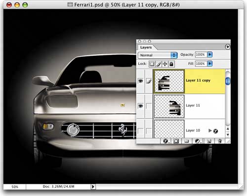 | You can jump to any layer in your document without going to the Layers palette. Press "v" to switch to the Move tool. Now, press-and-hold the Command key (PC: Control key), and click on an object on a layer in your image that you want, and you'll instantly jump to that layer. |