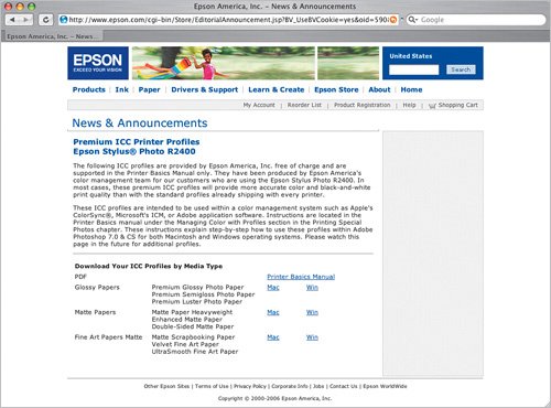 If you buy Epson papers (or any of the major name-brand professional inkjet papers), you'll definitely want to go to Epson's (or your paper manufacturer's) website, go to their downloads page for your particular inkjet printer, and download their free color profiles for the exact paper you'll be printing to. Once you install these free color profiles (they install with just a double-click), when you go to Photoshop to print your photo, you can choose the exact printer and paper combination you'll be printing to. This gives you the best possible results (and color fidelity) for your particular paper and printer. The pros do this every time and it makes a huge difference in the quality of their prints.