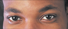 | This is a great little technique for quickly whitening the whites of the eyes, and it has the added benefit of removing any redness in the eye along the way. Step OneOpen the portrait you want to retouch. Press L to get the Lasso tool from the Toolbox and draw a selection around the whites of one of the eyes. Press-and-hold the Shift key and draw selections around the whites of the other eye, until the whites of both eyes are selected. Note: Press Z to get the Zoom tool and zoom in if needed. Step TwoGo under the Select menu and choose Feather, which will soften the edges of your selection so your retouch isn't obvious. In the Feather Selection dialog, enter 2 pixels and click OK. Step ThreeGo under the Image menu, under Adjustments, and choose Hue/Saturation. When the Hue/Saturation dialog appears, choose Reds from the Edit pop-up menu at the top (to edit just the reds in the photo). Now, drag the Saturation slider to the left to lower the amount of saturation in the Reds (which removes any bloodshot appearance in the whites of the eyes). Step FourWhile you're still in the Hue/Saturation dialog, from the Edit menu switch back to Master. Drag the Lightness slider to the right to increase the lightness of the whites of the eyes. Click OK in the Hue/Saturation dialog to apply your adjustments, and then press Command-D (PC: Control-D) to deselect, completing the retouch. The enhancement appears fairly subtle in the capture shown here, but when you try it yourself at full size, the effect will appear much more pronounced. Before After (bloodshot lessened and whites brightened) |