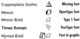 Use the More Info button to find more information, such as if the fonts can be embedded in PDF documents .