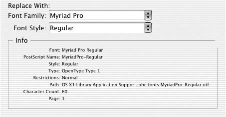 The Find Font dialog box lets you make global changes to the fonts in a document.