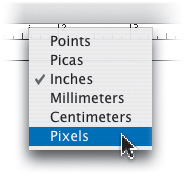 | The unit of measurement in Illustrator is determined in the Preferences (Illustrator>Preferences>Units & Display Performance [PC: Edit>Preferences>Units & Display Performance]). This will affect all aspects of the program that use measurements, including the rulers. However, if you need to quickly override the current measurements, just Control-click (PC: Right-click) anywhere on the ruler and choose your new unit of measurement. |