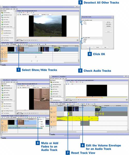 When you are done selecting the audio tracks you want to edit, click OK. This closes the Show/Hide Tracks window and takes you back to VideoWave where you can have up to four tracks of audio in your view.