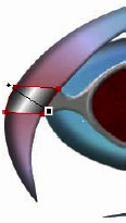 To add highlights to the curved shapes, use the Pen tool to draw the contour of the top of the left side. Use an Air Brush Basic, stroke of 20, edge of 100, and white.