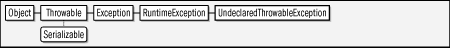 Thrown by a method of a Proxy object if the invoke( ) method of the proxy's InvocationHandler throws a checked exception not declared by the original method. This class serves as an unchecked exception wrapper around the checked exception. Use getUndeclaredThrowable( ) to obtain the checked exception thrown by invoke( ) . In Java 1.4 and later, all exceptions can be "chained" in this way, and getUndeclaredThrowable( ) is superseded by the more general getCause( ) method. Figure 10-103. java.lang.reflect.UndeclaredThrowableExceptionpublic class UndeclaredThrowableException extends RuntimeException { // Public Constructors public UndeclaredThrowableException (Throwable undeclaredThrowable ); public UndeclaredThrowableException (Throwable undeclaredThrowable , String s ); // Public Instance Methods public Throwable getUndeclaredThrowable ( ); // Public Methods Overriding Throwable 1.4 public Throwable getCause ( ); } |