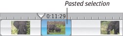 Figure 8.31. When pasting a copied selection into your movie, the new clip splits any existing clip at the Playhead and pushes its parts out of the way.