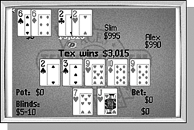ACES TEXAS HOLD'EMNO LIMITIf you are into Texas Hold'em poker, this is the game for you. Play against five other computer controlled players where the sky's the limit on the bets. The options and extras include changing out the computer players' skill and tracking your success over time, making this game a sure bet. URL: http://www.concretesoftware.com/product/athnolimit.shtml Price: $9.99 Trial: No Figure 14.10. Compete against five computer players in Aces Texas Hold'emNo Limit to be the poker champion.