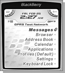 | One of the new features with version 4.0 of the handheld software is themes. In much the same way that Microsoft Windows has themes, the BlackBerry themes are a way to change the look of your handheld. This includes everything from the color scheme to the application icons and more. Even the way that the battery and signal strength indicators are displayed can be changed by a theme. The bad news to all this is that you probably only have a choice between two themes, if you have a choice at all. This is because themes are provided by your wireless carrier, so if you have one, it will be designed to how they want it to look. The only other alternative is the Default theme, which is essentially the same as having no theme. Themes are only generally available on 7100 model handhelds, but they are supported on all handhelds with version 4.0 of the software installed. You can view the themes on your handheld by opening the Options application and selecting the Themes option group. This displays a screen that lists the names of each of the themes, as shown in Figure 4.19. The theme that is currently active will have (Active) next to the theme name. Figure 4.19. Viewing the list of themes installed on your handheld.