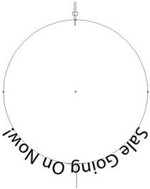 If, for example, you want to place text on a circle, click the top of the circle to create the start point and the end point; if you center your text, it actually aligns to the bottom of the path (Figure 6.18). To get text to align to the top center of a circle, either click at the bottom of the circle when you're creating the Path Type object, or adjust the start and end points so that the center of the text rests at the top of the circle (Figure 6.19). Figure 6.18. At first placing text on a circle seems non-intuitiveclicking at the top of a circle centers your text at the bottom of the circle. Figure 6.19. Changing the position of the start and end points can make it easier to center text at the top curve of a circle. Path Text OptionsPositioning text on a pathespecially a curved pathcan be difficult because the spacing can look irregular. However, you can adjust these and other settings by selecting the Path Type object and choosing Type > Type on a Path > Type on a Path Options. The following settings are available in the Type on a Path Options dialog: