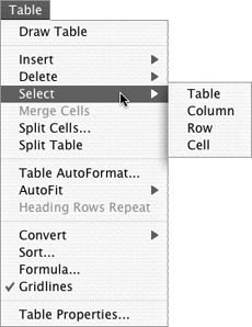 | In many cases, to format the contents of table cells or restructure a table, you must begin by selecting the cells you want to change. Selecting table cells is very similar to selecting other document text, but Word offers some tricks to make it easier. To select a cell