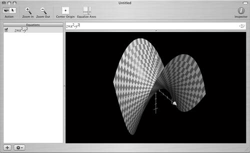 Applications Dictionary puts the Oxford American Dictionaries inside your Macintosh. Use it to get word definitions, pronunciations, synonyms, and antonyms. This feature is available as an application or as a Dashboard widget. Grapher (Figure 7), the first Mac OS X version of Graphing Calculator, graphs complex formulas. Figure 7. Grapher is the Mac OS X version of Apple's old Graphing Calculator.