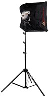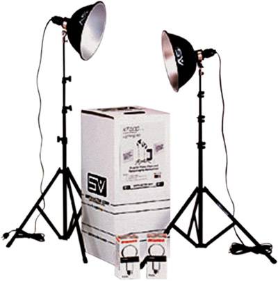 Smith-Victor KT500 Lighting KitIf you don't want to fork over six bills for the AlienBees kit, consider the much lower-priced (but still quite effective) Smith-Victor KT500 kit. This is a two-light photoflood kit that delivers a total of 500 watts of lighting. The kit includes two 10'' reflectors, two sockets and cords, two 6-foot telescoping stands, and two 250-watt photoflood bulbs. Just set them up and turn them on, and see for yourself how much better your photos look.