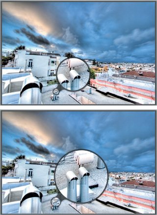| Just as a film photographer uses a loupea small magnifierto examine slides on a light table, you can use Aperture's virtual loupe to magnify your images. You can activate the Aperture loupe by clicking the Loupe icon on the toolbar, but keyboard control is much easier. You can toggle the loupe on and off at any time by pressing the ~ (tilde) key. The loupe will appear and will follow your mouse around, magnifying the area at the mouse's position (Figure 2.28). If you move too close to the edge of the screen, the loupe will automatically reorient itself to fit on your monitor. Figure 2.28. Drag Aperture's loupe over any image or thumbnail to see a 100 percent magnification.