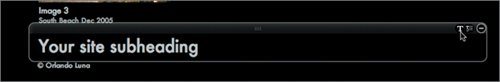 8. | Click the T in the text box to change the text to the Subheading style. Then select the text and type Colonia, Uruguay, photographed June 2005. Press Tab when you finish entering the text.