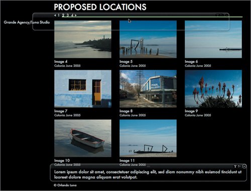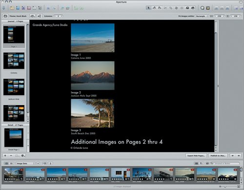 Tip To check your spelling, Control-click the text inside the text box and choose Spelling from the contextual menu. The web journal is almost done. Let's just make a few small adjustments to the size and position of the images on the pages.