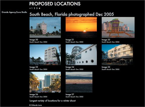 14. | Repeat steps 6 to 10 to add a subhead that says South Beach, Florida, photographed Dec 2005 and a note that says Largest variety of locations for a winter shoot.