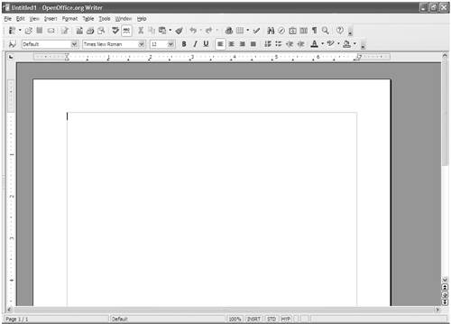 | When you open OOo Writer, you're faced with the usual blank page. The OOo Writer main screen. As a fun exercise for this book, I decided to make a little flyer advertising my dog, Terri, as a neighborhood watchdog. Besides barking at strangersespecially strange catsshe loves to watch me work, to the point where she'll stick her nose on my laptop keyboard if I leave it within her reach. "You might as well have her help you with the book," my wife said. "And if she can pick up a little extra cash doing guard duty, that wouldn't hurt, either. She eats a lot." Terri typing. |