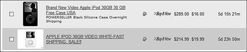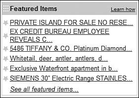 | When you're creating an item listing, eBay provides all sorts of listing "enhancements" you can use to make your listing stand out from the millions of others currently running. All of these listing options cost extra, above and beyond the normal listing fee, whether they actually improve your success rate or not. Let's look at each option in more detail. SubtitleeBay lets you supplement your main title with a subtitle, which appears below the title on your item listing page and on all search results pages, as shown in Figure 21.1. It's on the search results pages that a subtitle has the most value, as it essentially provides another 55 characters for you to describe your item to potential bidders. Of course, you pay for this option, in the form of a $0.50 fee. Is it worth the cost? It depends. Figure 21.1. A listing with subtitle. In some categories a majority of sellers have adopted the use of subtitles, so if you don't choose this option, your listings will look naked and somehow inferior. Other categories have less frequent use of subtitles, which might make a subtitled listing stand out in the search results. Or not. In addition, it's worth noting that adding a subtitle doesn't help potential buyers find your item. The text in a subtitle is not included in eBay's standard title search; it comes into play only if a user has expanded his or her search criteria to include the item description. So, all things considered, I'm not a big fan of the subtitle optionunless you're forced to use it. My advice is to use it if you have to (in those categories where all the other listings employ it), but otherwise not. GalleryeBay's gallery option started out as a way to display your items in a separate picture gallery. That gallery still exists, although few buyers use it. Instead, the gallery option today displays a photo next to your item listing on all browsing category pages, as shown in Figure 21.2. This is particularly important if you're selling a highly visual item, such as a painting or collectible. It's also important in those categories where a majority of other sellers use the optionwhich is an increasing number of categories, these days. Figure 21.2. Two listingsone with a gallery picture, one without. At just $0.35, this is one of the few listing enhancements that I recommend. Gallery FeaturedeBay also offers a second gallery option, called Gallery Featured. When you pay for this option, your item will periodically show up in the special Featured section above the general gallery. Pricing for the Gallery Featured option is $19.95. It's a fairly expensive enhancement, and I'm not sure it gets you much; most buyers look beyond the first listings on a page. Gallery PluseBay's newest listing option is Gallery Plus. Not to be confused with Gallery Featured, Gallery Plus puts an Enlarge icon below your gallery image on search results pages. Users who click the icon, or just hover over the icon with their mouse, display a larger (up to 400 x 400) version of your gallery picture. You pay an extra $0.75 for the Gallery Plus optionalthough this fee also gives you the standard $0.35 Gallery option, so it's really just 40 cents extra on top of the regular Gallery, if you think of it that way. While Gallery Plus is too new for me an offer an informed opinion as to effectiveness, it smacks somewhat of opportunism on eBay's part and seems a little pricy for what you get. I'd wait until other users render judgment before embracing this feature. BoldHow do you make your item stand out on a page full of listings? How about displaying the listing title in boldface? This option, which costs $1.00, displays your item title in bold in any category or search results listings. A boldfaced item listing is shown in Figure 21.3. Figure 21.3. Two item list-ingsthe second one in bold. Note To use Gallery Plus, you must have your pictures hosted by eBay Picture Services. Because of the high price and minimal visual impact of this enhancement, I can't recommend you use it. BorderWant something a little more attention-getting than a bold title? How about putting a frame around your listing? The Border option puts a dark border around your listing on every search results page, as shown in Figure 21.4. This option is more expensive than the bold option, costing you $3.00. I don't think it's worth the money. Figure 21.4. An item listing with the Border option.HighlightIf you want to spend even more money, how about creating a shaded item listing? When you select the Highlight option, your listing (on any category or search results page) is displayed with a colored shade, as shown in Figure 21.5. This little bit of color will cost you $5.00and, as with the bold option, I find it too high-priced to recommend. Figure 21.5. Two item list-ingsthe second one enhanced with the Highlight option. Featured Plus!The Featured Plus! option displays your item in the Featured Items section on the appropriate major category page, as well as in the Featured Items section at the top of any search results page, as shown in Figure 21.6. This option will set you back a whopping $19.95, and I can't recommend it; it puts your "featured" listing at the bottom of the page, which is hardly a prominent position! Figure 21.6. The Featured Items section at the top of a search results page. Home Page FeaturedEver wonder how much it costs to have your item featured on the eBay home page? Here's the answer: $39.95. (And this option doesn't even guarantee how often your item will pop up. What a dealnot.) All you have to do is select the Home Page Featured option, and your item will periodically be displayed on the home page, as shown in Figure 21.7. (And for the same low price, your item also gets displayed in the Featured Items section of normal category and search results pages.) This is another option that I can't recommend, unless you're selling something really special. Figure 21.7. The Featured Items section in the middle of eBay's home page