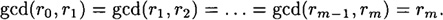 First, we describe the Euclidean algorithm, in its basic form, which is used to compute the greatest common divisor of two positive integers, say r0 and r1, where r0 > r1. The Euclidean algorithm consists of performing the following sequence of divisions: