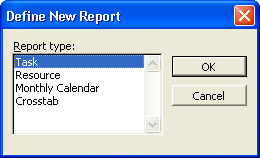 In the Report Type box, select the type of report you're creating and then click OK.