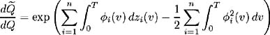 is the Radon-Nikodym derivative defining the equivalent martingale probability measure. From (11.22) and the above proposition, showing the independence of the market prices of risk of bond maturity T and equivalently the uniqueness of the equivalent probability measure across all bond maturities, the Radon-Nikodym derivative may be written as: