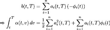 Examine closely the derivation of (11.29c). By (11.29b) the market prices of risk are independent of the set of bond maturities specified, so (11.20) is equivalent to (11.17) with ³ i ( t ) = ³ i ( t ; S 1 , , S n ) = i ( t ). Making use of the definitions of a i ( t, T ) and b ( t, T ) in (11.11), equation (11.20) becomes: