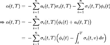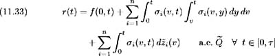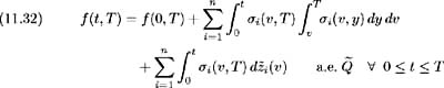 To eliminate the market prices of risk from the forward rate process (11.26), make use of this forward rate drift restriction. Integrating the restriction in (11.29c) over [0, t ] yields: