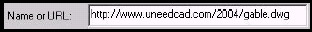| | 2. Type the address of the file to open into the File name text box (Figure 1.5.2.1.2a). (The address is http://www.uneedcad.com/2004/web.dwg . Be sure to include the extension.) | |