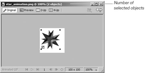 | Tweening is the process of defining beginning and ending frames, and then creating images in between to give the appearance that the first frame slowly changes to the last frame. This is similar to tweening in Macromedia Flash. You define the first image as a symbol, make a copy of the symbol, and then let Fireworks calculate (tween) the images in the middle. In this exercise, you look at different effects you can achieve by tweening.