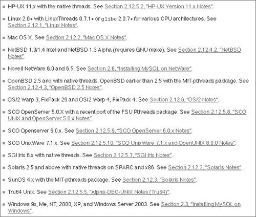 | In order to follow the discussions in this book, there are a few, though not too restricting, technical requirements. The first, naturally, would be the MySQL software itself. Fortunately, this is freely available and runs on most operating systems (Figure i.6). Chapter 1, "Installing MySQL," will cover the fundamentals of installing MySQL on three popular operating systems: Windows, Linux, and Mac OS X. Figure i.6. MySQL is available in versions designed to run on almost every operating system, including various types of Unix and Windows. The bulk of the chapters involve administering and interacting with the database from a command-line perspective. Whichever application on your operating system gives you this access is acceptable, be it a DOS prompt on Windows (Figure i.7), a Linux shell, or the Mac OS X Terminal (Figure i.8). Figure i.7. Windows has a command prompt (or DOS prompt), which will be used in this book. Figure i.8. Mac OS X comes with the Terminal application, which allows you to interact with the computer on a command-line level. Lastly, the programming chapters covering PHP, Perl, and JavaChapters 7, 8, 9, and 12will require a text editor, a Web browser, and so forth. The specific requirements will be discussed in the pertinent chapter. |