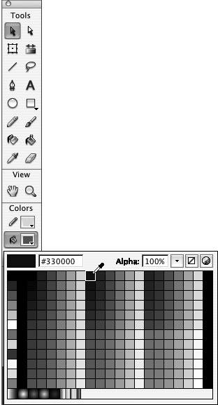 The Fill Color control highlights, the pointer changes to an eyedropper, and a set of swatches pops up (Figure 2.17).