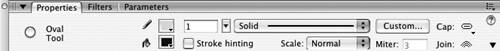 Figure 2.18. When nothing is selected on the Stage and you select a tool that creates fills, such as the oval tool, the Properties tab of the Property inspector displays a Fill Color control. | 3. | In the Properties tab of the Property inspector, click directly on the color chip in the Fill Color control (the one identified by a paint-bucket icon).