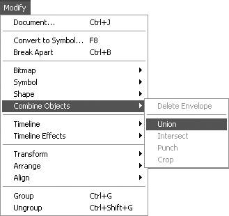 | The shapes you create in Object Drawing mode don't interact with one another or with shapes you create in Merge Drawing mode, even when they overlap. But you can force them to do so by using the Modify > Combine objects commands. To unite multiple drawing-objects