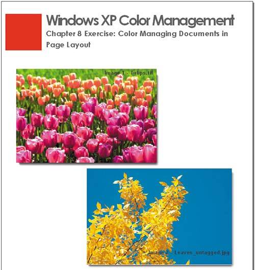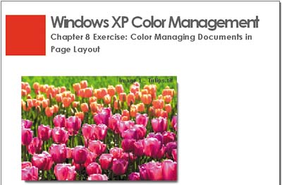| 2. | Choose File > Open, and navigate to and open Sample Layout.qxp, located in Windows XP Color Management Project Files > Chapter 8. (You should have already downloaded the project files from the book's Web site to this folder on your hard drive.)