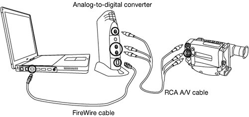 This is another HDV clip. Because HDV clips have a wider image area, you can see more action in the clip. Connecting via FireWireFinal Cut Express can edit DV or HD video. That means the material you choose to edit has to be shot with an HDV or DV camera or transferred to one of these formats from its originating source. If you shot with an HDV or DV camera, you can simply hook up your camera directly to your computer and you're ready to input, or capture, material into the editing program. Or if you have a DV or HDV VCR, you can take the tape from your camera and play it back from the VCR to the computer. FireWire is an Apple technology used to connect peripheral devices to your computer. With a FireWire connection, you can input, or capture, video images directly into your computer. You can also output your final edited project through FireWire back to a DV or HDV recording device. Note In Lesson 12, which discusses inputting your video into the computer, you will plug your camera source into your computer using a FireWire cable and then capture video. Often the FireWire connection that goes to the camera or VCR is smaller than the one that goes to the computer. However, if you want to edit something that was shot on a nondigital format, such as Hi-8 or VHS, you will first have to dub that material to a digital format before bringing it into Final Cut Express HD. You can purchase a converter box that will convert a nondigital or analog video format into a digital video signal that you can input into your computer. Capturing is discussed in detail in Lesson 12. |