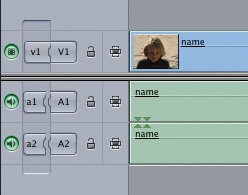 Note When you mark in the Timeline, the marked portion appears lighter than the other clips in the sequence. | | | 3. | To edit just the video of this clip, click the a1 and a2 source controls to disconnect them from the destination tracks. You can also click the destination track controls to get the same result.