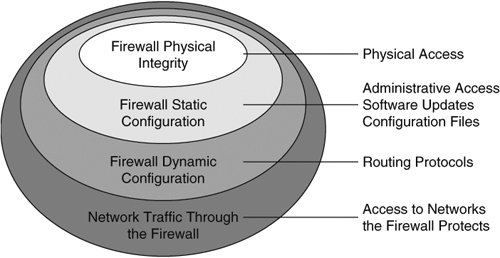 | Written security policies exist to provide a high-level roadmap of what needs to be done to ensure that the organization has a well-defined and thought-out security strategy. It is a common misconception that an organization has a security policy. In fact, an organization's overall security policy typically consists of numerous individual security policies, which are written to address specific objectives, devices, or issues. The objective of a security policy is to define what needs to be protected, who is responsible for protection, and in some cases how the protection will occur. This last function is typically separated out into a standalone procedure document such as the ingress-filtering, egress-filtering, or management-access policy documents discussed later in this chapter. In a nutshell, the security policy should simply and concisely outline the specific requirements, rules, and objectives that must be met, to provide a measurable method of validating the security posture of the organization. To help ensure that your security policies will do this, think of the firewall in terms of security layers, with each layer having a specific realm of operation. Figure 10-1 illustrates this layered view of the firewall. As you can see, the firewall is separated into four distinct components. Figure 10-1. Firewall Security Layers At the center is the firewall physical integrity layer, which is predominantly concerned with the physical access to the firewall. Consequently, you want to ensure that your security policies address issues related to gaining physical access to the device, such as through a hard console port connection. The next layer is the firewall static configuration, which is predominantly concerned with access to the static configured software the firewall is running (for example, the PIX operating system and startup configuration). At this layer, your security policy needs to focus on defining the controls that will be required to restrict administrative access, including performing software updates and configuring the firewall. The third layer is the firewall dynamic configuration, which complements the static configuration by being concerned with the dynamic configuration of the firewall through the use of technologies such as routing protocols, Address Resolution Protocol (ARP) commands, interface and device status, audit logs, and shun commands. The objective of the security policy at this point is to define the requirements around what kinds of dynamic configurations will be permitted. Finally, you have the network traffic through the firewall layer, which is really what the firewall exists to doprotect resources. This layer is concerned with functionality such as ACLs and service proxy information. The security policy at this layer is responsible for defining the requirements as they relate to traffic passing through the firewall. Tip When you decide to create your security policies, remember a couple of things: