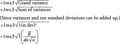 Since this method considers the ranges of the sample size n, it is important that the various ranges are of compatible order, so that the mean range of the n samples has a significance. This seems to be ideal when the constituent costs are from similar or homogeneous activities, indicating the same order of the quantity of work involved. Activities from the same or similar work package are good examples. Say RCC work in floors one to ten, when the floor sizes are similar. Let's call this Method 1. However, when dealing with non-homogeneous activities or when summing up through various work packages of dissimilar nature, it is better to add up the various variances rather than considering the mean range of samples.