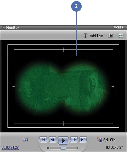 Did You Know? You can track a matte. One of the purposes of the Track Matte is to create this "peephole" effect to show another track through it. Typically, it's used to superimpose one image over another, such as a bride and groom in a heart shape, superimposed on a clip of the chapel. It can be used to show the state champion (soccer or spelling) "super'ed" within a star shape. Here, we are using the technique a little differently. We don't want another clip showing through; we just want to use the Track Matte Key to hide most of our nighttime track and use the key as the point of view (POV) for our audience.