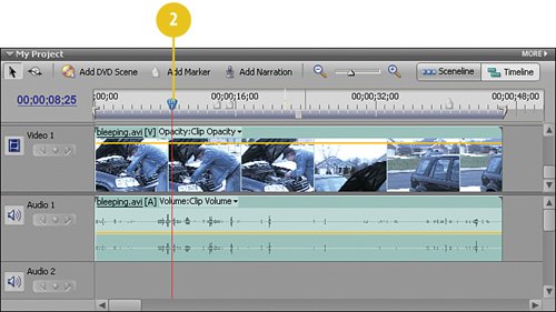 Did You Know? You can use the arrow keys on your keyboard for frame-by-frame accuracy. You can "scrub" to the sound your looking for by dragging the Current Time Indicator (CTI) to the general vicinity. Then, for frame-level accuracy, use the right and left arrow keys on your keyboard to move along the Timeline, one frame at a time: 00;00;13;22, 00;00;13;23, 00;00;13;24... |