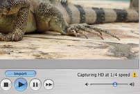 Free space . This indicator lets you know how full your hard drive is. UP TO SPEED Special Cases: Recording from iSight, USB, and Hi-Def Camcorders | | Recorded footage from a MiniDV tape is by far the most popular source of iMovie video, but it's not the only one. Here are some of the latest new sources. iSight . The iSight camea (about $150) doesn't take tapes, so you can't prerecord something. But it's an excellent tool for recording live events directly into iMovie. Just connect the iSight's FireWire cable to the Mac. Choose iSight from the little pop-up menu below the Monitor window, and then click Record with iSight. USB Camcorders . Panasonic, Fisher, Gateway, and other companies sell a new breed of super-tiny microcorders that can capture video directly onto memory cards. iMovie lets you work with many of these "camcorders," or at least the ones that record in MPEG-4 Simple Profile format. When you connect one of these 'corders to your Mac's USB jack, the memory card shows up on your screen as though it's a disk. Double-click it to reveal its contents, which include a folder with all your video recordings in it. Bring them into iMovie by simply dragging their Finder icons into the iMovie Track or Clips pane. HDV Camcorders . The high-definition video format offers a stunning, high-resolution picture, clear enough to make you feel like you're looking out a window and wide enough to show you, in a single camera shot, the pitcher, the batter, and the runner on first. To see high definition, you need a high-def TV set (an HDTV). And to film HDTV, you need an HDV camcorder like Sony's HDR-FX1 or HDR-HC1. (HDV isn't a typo. That's the format these camcorders use to store high-def video on ordinary MiniDV tapes.) Importing and editing high-def video is almost exactly like working with regular video. One difference: Your Mac probably isn't fast enough to capture this massive amount of data in real time. That's why you'll see the tiny notation "Capturing HD at 1/4 speed," as shown here. (The fraction fluctuates as the importing goes on.) In other words, importing high-def footage isn't a real-time operation. Even after the camera is finished playing the tape, iMovie takes a few more minutes to catch up. Fortunately, it's worth the wait. Once the HDTV footage is inside iMovie, you can work with it with all the speed and fluidity of standard footage. And when the work is finished, you can export the result to iDVD to burn onto a DVD. No, the result won't be a high-definition disc; it will, however, be a widescreen disc (at your option), which will look absolutely spectacular on a widescreen TV. | |