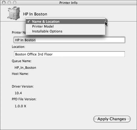 | Tips You can delete a printer by selecting it and clicking Delete on the Printer List Toolbar. Double-click a printer in the list to view its local print job queue (Figure 7.45). Figure 7.45. Double-click any printer to view its queue.  You can edit a printer's configuration by selecting it in the Printer List window and clicking Show Info (Figure 7.46). Figure 7.46. Clicking Get Info when a printer is selected shows editable options.  |