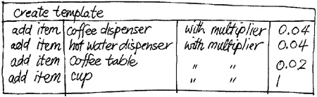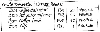 17.3. The First StorytestsSarah and Don got together with Mitra later that day, while Seth was on the phone, to create one or two Fit tests for each of the stories. Doing so would help refine their thinking about the stories. And the next day, when it would be time to choose the stories for the next iteration, these tests will help the developers estimate how long each story will take to implement. 17.3.1. Creating a Template"So we've got several related stories," said Don. "Shall we start with creating a template from scratch?" "Yes, OK," replied Mitra. "I imagine that a template is simply a list of rental items, with the proportions beside each one." She started to sketch it on the whiteboard, as shown in Figure 17.1. Figure 17.1. Create a Template "Do we assume that all the items will be rented for the same period?" asked Sarah. "Yes," replied Mitra, "I imagine so. We need to allow for the return date to be changed on any rentals created from a template. Any of the information can be changed." "Does the proportion have to be less than 1.0?" asked Sarah. "No," replied Don, "more cups may be required than the number of guests." "Wouldn't percentages be easier (4 percent instead of 0.04)?" asked Sarah. "It would be easier still if it were the number of people per item," suggested Don. "Also, we need to name the template." He altered the test, as shown in Figure 17.2. Figure 17.2. Create a Template, Altered "That was pretty easy," said Mitra, "although we'll need to put it in the context of a transaction to complete it. What's next?" 17.3.2. Using a TemplateThey decided to work next on using a template. "That's much the same as renting," suggested Sarah, who sketched up the test shown in Figure 17.3. Figure 17.3. Use a Template "We can alter that slightly for a booking," said Sarah, as she sketched out Figure 17.4. Figure 17.4. Use a Template for Booking 17.3.3. Using a Template Inside a Template"The templates could have many items for a big event," Mitra mused. "Every time you serve coffee in an event, you'd need to repeat the data in Figure 17.2, as well as all the other things you'd need, such as milk, sugar, tea, and other drinks." "One approach," suggested Sarah, "would be to allow for templates themselves to be used in templates.' "How do you mean?" asked Don. "Well, imagine that we're creating a template for a conference." said Sarah. "As well as including rental items in the list, such as audiovisual equipment, we could include a template for a coffee break, too. Of course, we'll need to ask Seth to discuss it with the people who really know how these things work." She started to sketch out Figure 17.5. "Whoops, what do I put down for the number?" Figure 17.5. Using a Template Inside a Template "Perhaps we don't need a number," suggested Don, "because the number of guests for the conference will be the same as the number for the coffee break." "Let's leave it out then," added Mitra. "But what if we need coffee for the organizers of the conference? We may want to add those people." "We could also allow a multiplier, I suppose." said Don. "But let's keep it simple for now, with no number." "Yes," agreed Mitra, "it's better to start simple and extend it ifand when there's a demand." She altered the last test, as shown in Figure 17.6. Figure 17.6. Using a Template Inside a Template, Revised Seth joined the group after he had talked to Tim and Fiona at the two rental companies about the current stories: "There is strong interest in having this in RentEz." Mitra outlined their progress on the template idea and showed Seth the tests they'd developed. "Your templates seem to do everything that's needed, and more," said Seth. "I like the template tests, although nested templates may be too complex." "At least, people don't need to use them," said Mitra. "We need to weigh the cost of this feature against the benefit," replied Seth. "Tim and Fiona like lots of things that they're not willing to pay for. I've told them that I'd show them the tests once they're completed, to get their feedback." "I hope they like the templates," said Mitra. "It's great that some of our customers really like being consulted early on about new developments," replied Seth. "When I talk them through the Fit examples, showing what we're planning, they often make excellent suggestions that are easy to incorporate. It also means that they know what's coming and can plan for it. They used to be so resistant to upgrades, but now they're enthusiastic. It's great having their confidence and enthusiasm again." Questions & Answers