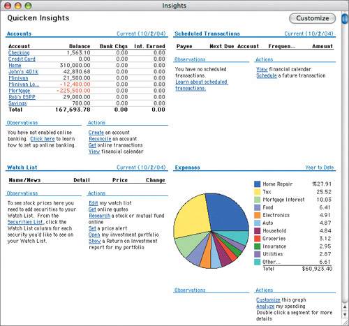 What You'll CreateCreate a data file in Quicken to contain all of your financial information. Create accounts in Quicken that correspond to your checking, savings, credit card, and investment accounts in the real world, and see at a glance your account balances . Set up your paycheck and schedule it so that Quicken automatically enters the paycheck information every time you get paid. You'll learn how to write checks in Quicken, and, if you like, print checks from the program on pre-printed check forms. Never forget a bill againjust put regular bills into Quicken and tell it to memorize the bill. Quicken reminds you to pay the bill every month, banishing late fees forever! Tired of writing checks? You can pay your bills from within Quicken with online banking and online bill payment. This saves you time and effort, and as a bonus, it takes literally seconds each month to reconcile your checkbook . Credit cards are great, but they can be cruel masters if you let your spending get out of hand. You'll learn to use Quicken to keep on top of credit card debt and prevent it from spiraling out of control. Quicken's reports and graphs are great tools to let you know where your finances stand. You'll see how to use them for a quick financial checkup. Looking forward to retirement? Smart investing now will pay off in the years ahead. You'll see how to set up your investment accounts, and how you can keep on top of your portfolio as it grows in value. |