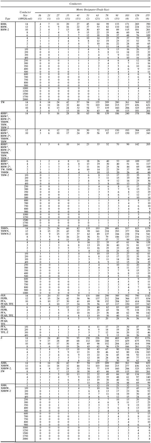 [*] Where this table is used in conjunction with Tables C1 through C12, the conductors installed must be of the compact type.