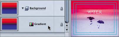 | That was easy. You can also apply gradient presets to text and objects. Applying a Gradient Preset to Text To apply a gradient preset to a text object, you simply select the text object and then apply the gradient preset. Then you can modify the gradient parameters in the Inspector. Let's apply a gradient to the WATER text object. 1. | On the Layers tab, select the WATER text object in the Water layer.